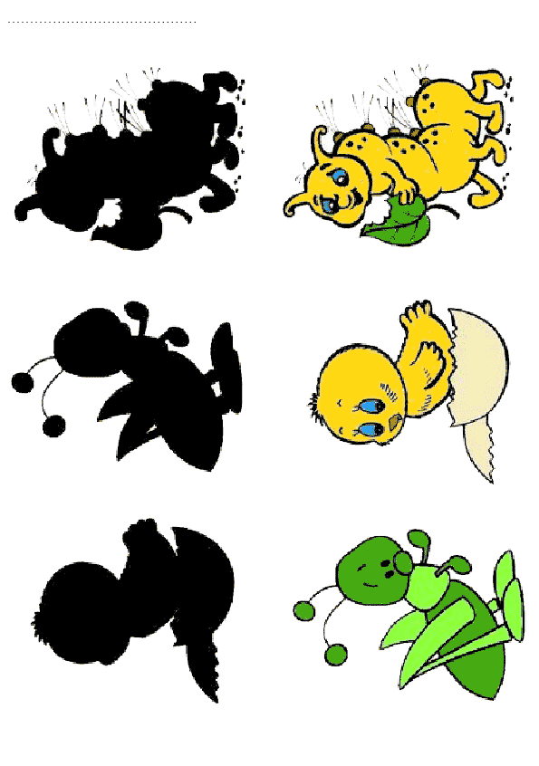 Gölge eşleştirme çalışma sayfası ve hayvanlar çekirge, civciv, tırtıl ücretsiz eşleştirme etkinlikleri çalışma sayfaları kağıtları ile kağıtları indirme, yazdır. Free shadow matching worksheets download and printables.