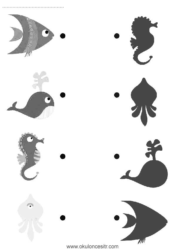 Gölge eşleştirme çalışma sayfası ve deniz canlıları, denizatı, denizanası, balina ücretsiz eşleştirme etkinlikleri çalışma sayfaları kağıtları ile kağıtları indirme, yazdır. Free shadow matching worksheets download and printables.