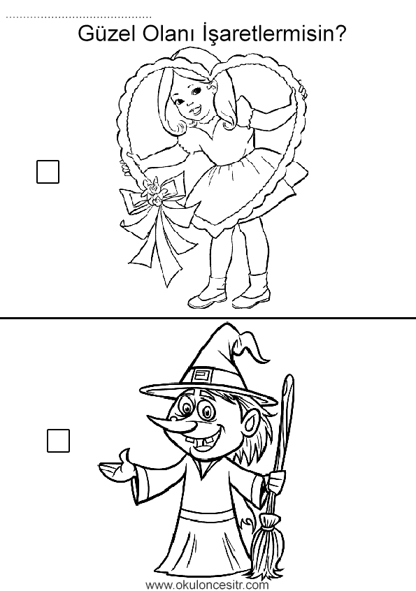 Güzel çirkin kavramı çalışma etkinliği sayfaları ve tatlı cadı güzel çirkin zıt kavramlar çalışma sayfası etkinlikleri örnekleri kağıdı indirme, çıktı alıp yazdırma. Free beautiful ugly worksheets download printable.