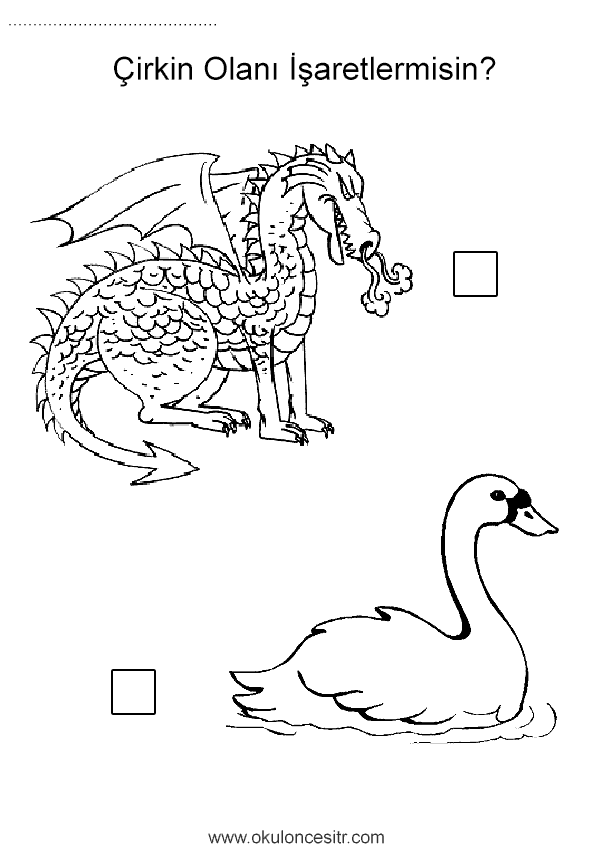 Güzel çirkin kavramı çalışma etkinliği sayfaları ve kuğu ejderha güzel çirkin zıt kavramlar çalışma sayfası etkinlikleri örnekleri kağıdı indirme, çıktı alıp yazdırma. Free beautiful ugly worksheets download printable.