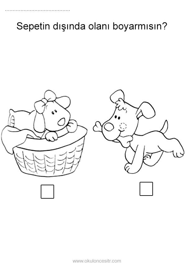 İçinde dışında kavramı çalışma sayfası etkinlikleri ile şirin yavru köpek içerisinde dışarısında mekanda konum kavramları çalışmaları etkinliği örnekleri kağıdı indirme, çıktı yazdırma. Free inside and outside worksheets download printable.