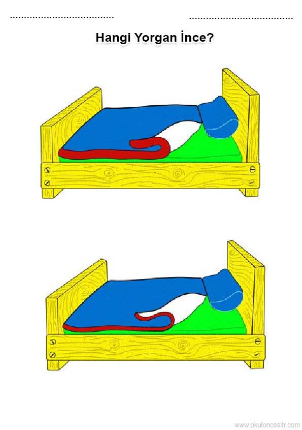 İnce Kalın kavramı çalışma sayfası etkinlikleri ve yatak ince kalın boyut kavramları çalışmaları oyunu örnekleri kağıdı indirme ve çıktı al yazdırma. Free thick and thin concept worksheet download printable.