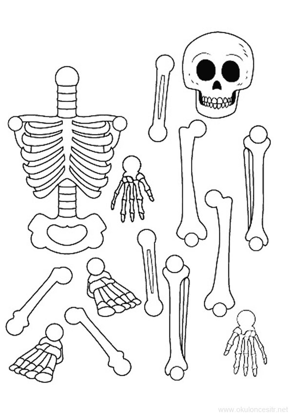 Okul öncesi anasınıfı etkinliklerinde kullanılmak üzere 2 iskelet kalıbı, iskelet kalıbı indir, iskelet etkinliği yazdır. Free skeleton mold, skeleton mold download, print.