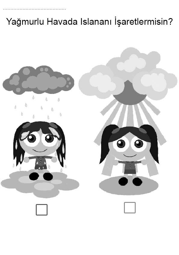 Islak kuru kavramı çalışma sayfası etkinlikleri ve güneşli yağmur ıslak kuru duyu kavramları çalışmaları etkinliği örnekleri kağıdı indirme, çıktı yazdırma. Free wet dry worksheets download printable.