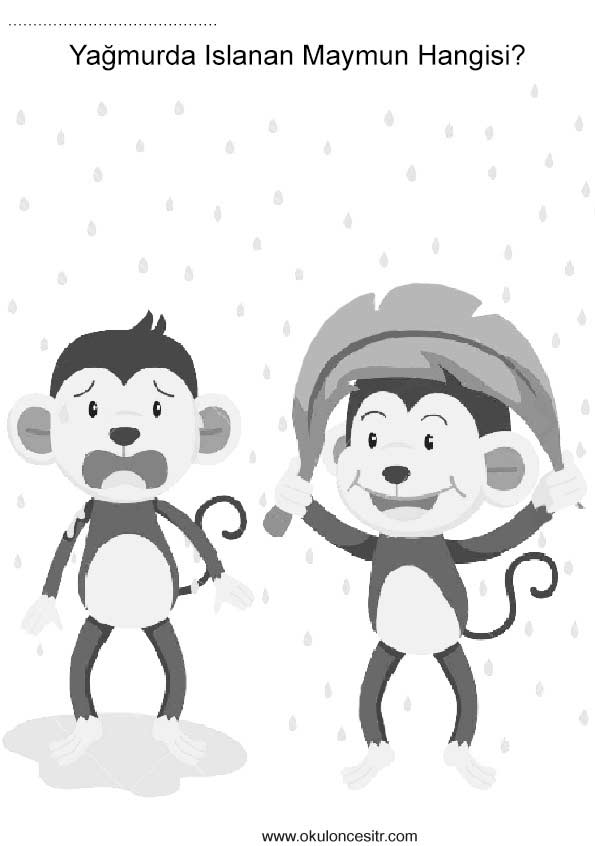 Islak kuru kavramı çalışma sayfası etkinlikleri ve maymun yağmur ıslak kuru duyu kavramları çalışmaları etkinliği örnekleri kağıdı indirme, çıktı yazdırma. Free wet dry worksheets download printable.