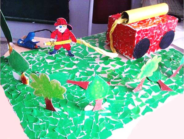 İtfaiye aracı yapımı anasınıfı ve okul öncesi sanatsal, kolaj, artık materyal çalışmaları