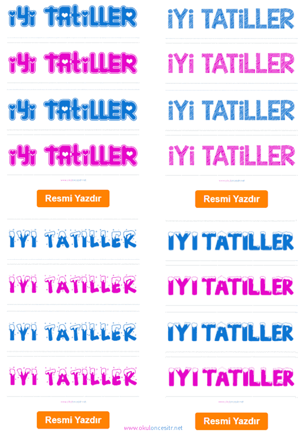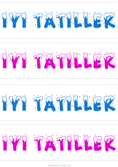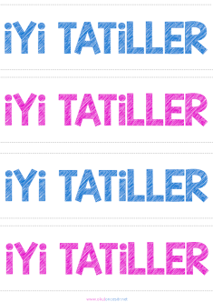 Okul öncesi, anasınıfı ve ilkokul karne için iyi tatiller yazısı kalıplarına aşağıdan ulaşabilirsiniz. Kesik çizgilerden keserek gelişim raporu kalıplarında veya karnelerde kullanabilirsiniz. Yüzlerce kalıbı bu sayfaya ekleyeceğiz. Bu konuyu sık kullanılanlara ekleyerek kolay ulaşabilirsiniz.