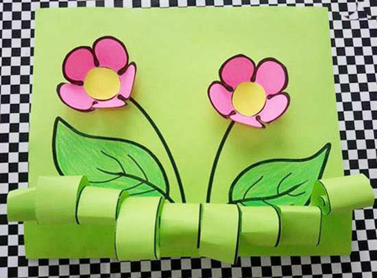 Okul öncesi anasınıfı kağıttan yuvarlama ve katlama yöntemiyle üç boyutlu çiçek yapımı.
