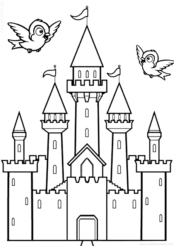 Üzerinde kuşlar uçuşan kale boyama sayfası ve okul öncesi kale boyaması, renkli eğlenceli anasınıfı kale boyamaları, basit, zor, kolay kale resmi boyama sayfası online boyayabilir veya ücretsiz indirip, pdf çıktı alabilirsiniz, çıkartabilirsiniz. Free preschool castle coloring pages download and printables kids and kindergarten.