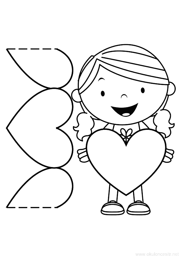 Okul öncesi anasınıfı etkinliklerinde kullanılmak üzere elinde kalp olan kız kalıbı, kalpli kız kalıbı indir yazdır, çıktı al eğitim sitesi.