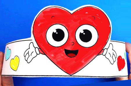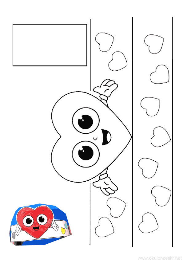 Okul öncesi anasınıfı etkinliklerinde kullanılmak üzere kalpli şapka kalıbı, kalp tacı, kalpli taç yazdır indir kalıbı.