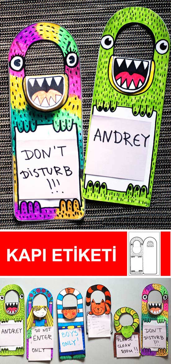 Kapı kolu etiketi yapımı, kapı kolu süsleri kalıbı etkinlikleri çalışmaları kalıplı kağıt el işleri çalışması ve örnekleri etkinliği. Preschool activities craft site.