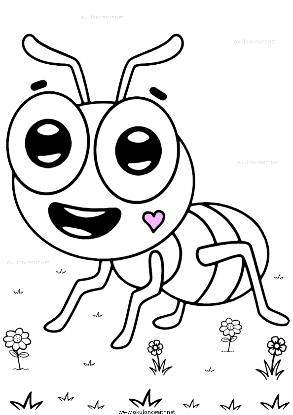 Kocaman gözleri olan karınca boyama sayfası ve pembe kalp yanaklı karınca boyaması oyunu, basit, kolay, zor karınca boyama sayfaları, renkli çizimi kitabı siyah beyaz kalıbı boyamaları. Karınca nasıl çizilir, pdf ücretsiz çıkartın veya resimleri indirin. Kindergarten, preschool, kids free ant coloring pages download and printables.