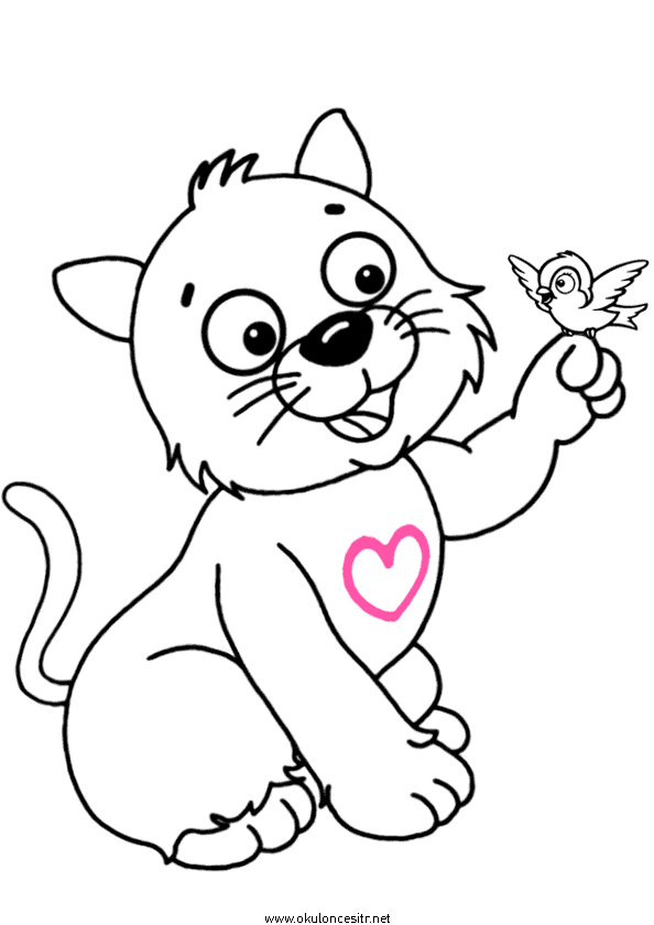 Kuşla sohbet eden kedi boyama sayfası ve kedi boyaması oyunu, renkli çizimi kitabı siyah beyaz kalıbı boyamaları, basit, kolay, zor kedi boyama sayfaları. Kedi nasıl çizilir, ücretsiz çıkartın veya pdf resimleri indirin. Kindergarten, preschool free cat coloring pages download and printables kids.