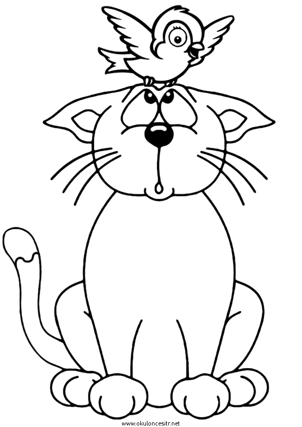 Kafasına kuş konan kedi boyama sayfası ve kedi boyaması oyunu, renkli çizimi kitabı siyah beyaz kalıbı boyamaları, basit, kolay, zor kedi boyama sayfaları. Kedi nasıl çizilir, ücretsiz çıkartın veya pdf resimleri indirin. Kindergarten, preschool free cat coloring pages download and printables kids.