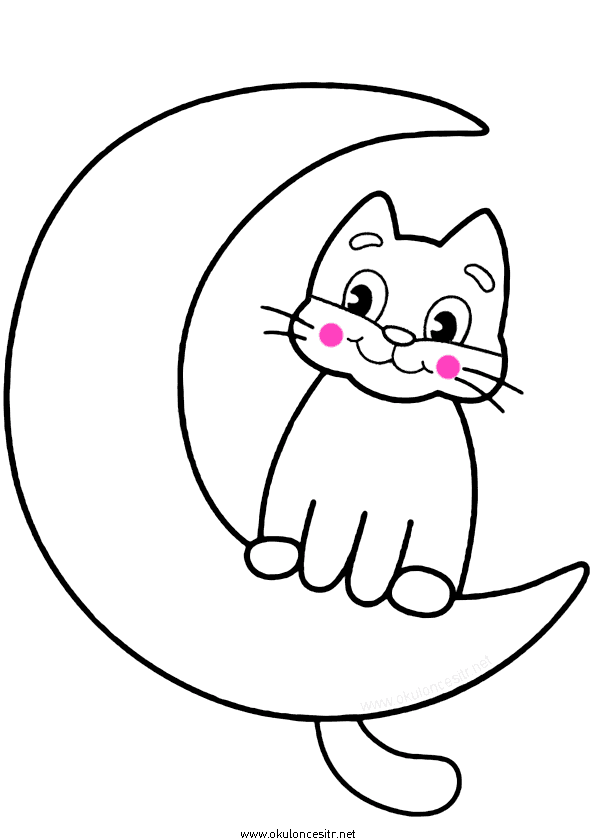 Ayda oturan kedi boyama sayfası ve dolunayda kedi boyaması oyunu, renkli çizimi kitabı siyah beyaz kalıbı boyamaları, basit, kolay, zor kedi boyama sayfaları. Kedi nasıl çizilir, ücretsiz çıkartın veya pdf resimleri indirin. Kindergarten, preschool free cat coloring pages download and printables kids.