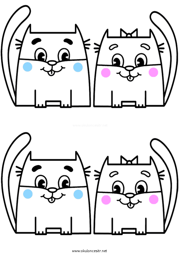 Sevimli eş kedileri boyama sayfası ve pembe yanaklı kedi boyaması oyunu, mavi yanaklı renkli çizimi kitabı siyah beyaz kalıbı boyamaları, basit, kolay, zor kedi boyama sayfaları. Kedi nasıl çizilir, ücretsiz çıkartın veya pdf resimleri indirin. Kindergarten, preschool free cat coloring pages download and printables kids.