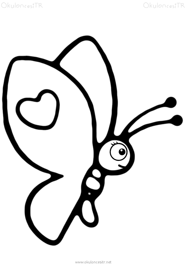 Kanadında kalp olan kelebek boyama sayfası ve kelebek boyamaları oyunu, basit, kolay, zor kelebek boyaması sayfaları okul öncesi, anasınıfı, renkli çizimi kitabı kalıbı. Kelebek nasıl çizilir, siyah beyaz pdf ücretsiz çıkartın ve resimleri indirin. Kindergarten, preschool, kids free butterfly coloring pages download and printables.