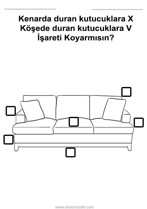 Kenar köşe kavramı çalışma sayfası etkinlikleri ve kanepe kenar köşe şekil kavramları çalışmaları etkinliği örnekleri kağıdı indirme, çıktı yazdırma. Free edge corner worksheets download printable.
