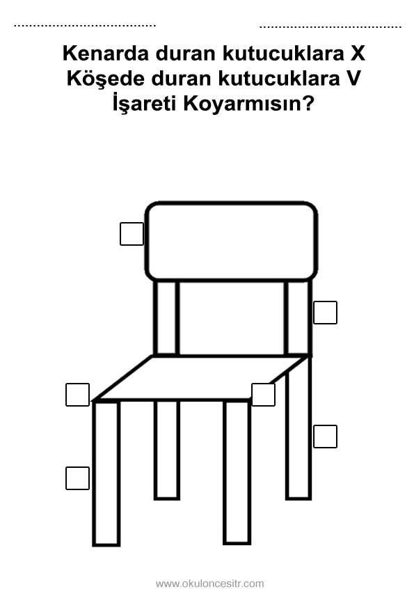 Kenar köşe kavramı çalışma sayfası etkinlikleri ve sandalye kenar köşe şekil kavramları çalışmaları etkinliği örnekleri kağıdı indirme, çıktı yazdırma. Free edge corner worksheets download printable.