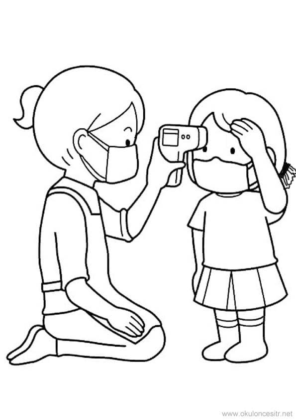Korona ile ilgili okul öncesi ilkokul boyama sayfası etkinliği, etkinlikleri çıktı alma ve yazdırma sayfası. Print and have fun with corona events, home quarantine activity sheet, coloring page and interactive activities.