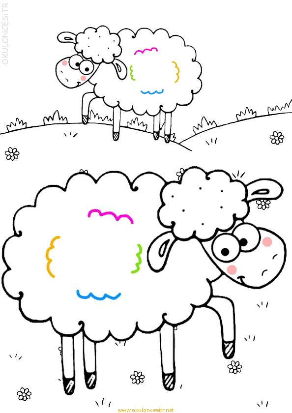 Dağlarda gezen renkli koyunları boyama sayfası ve keçi koyun boyamaları oyunu, renkli çizimi siyah beyaz kalıbı boyaması, basit, zor, kolay yavru keçi koyun kuzu boyama sayfaları kitabı. Koyun nasıl çizilir, ücretsiz çıkartın ya da resimleri pdf indir, kalıp yazdır. Kindergarten, preschool kids free goat lamb sheep coloring pages download and printables.