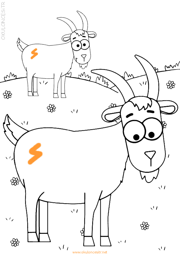 Dağlarda yiyecek arayan keçi boyama sayfası ve keçileri boyamaları oyunu, renkli çizimi siyah beyaz kalıbı boyaması, basit, zor, kolay yavru keçi koyun kuzu boyama sayfaları kitabı. Koyun nasıl çizilir, ücretsiz çıkartın ya da resimleri pdf indir, kalıp yazdır. Kindergarten, preschool kids free goat lamb sheep coloring pages download and printables.
