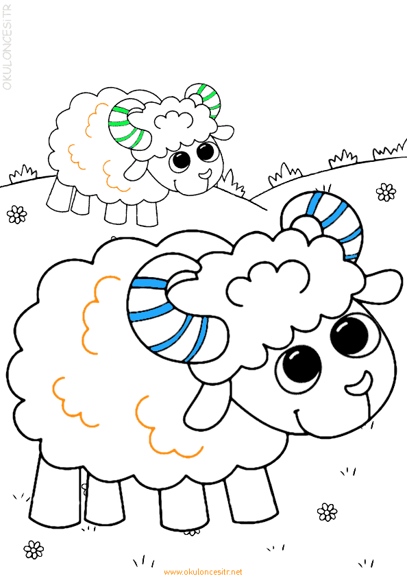 Renkli boynuzları olan koyun boyama sayfası ve sevimli keçi boyamaları oyunu, renkli çizimi siyah beyaz kalıbı boyaması, basit, zor, kolay yavru keçi koyun kuzu boyama sayfaları kitabı. Koyun nasıl çizilir, ücretsiz çıkartın ya da resimleri pdf indir, kalıp yazdır. Kindergarten, preschool kids free goat lamb sheep coloring pages download and printables.