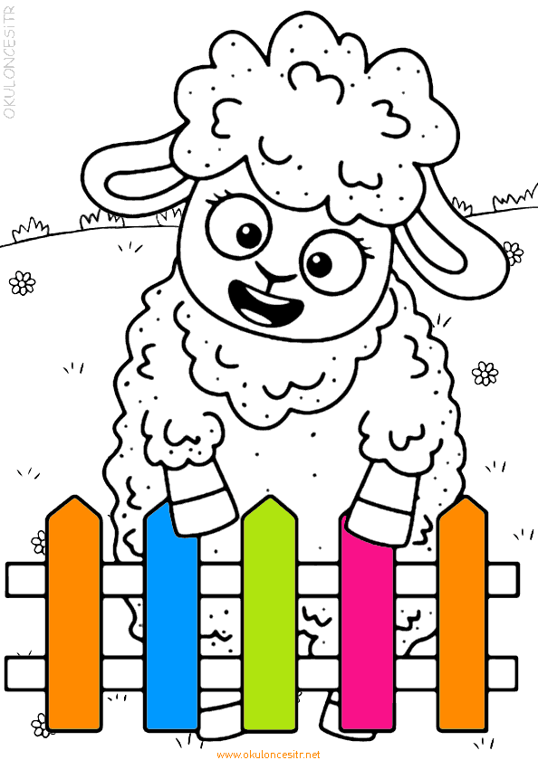 Çitlerin arkasından gülerek bakan koyun boyama sayfası ve rengarenk koyun boyamaları oyunu, renkli çizimi siyah beyaz kalıbı boyaması, basit, zor, kolay yavru keçi koyun kuzu boyama sayfaları kitabı. Koyun nasıl çizilir, ücretsiz çıkartın ya da resimleri pdf indir, kalıp yazdır. Kindergarten, preschool kids free goat lamb sheep coloring pages download and printables.