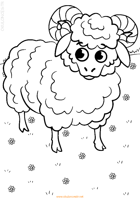 Boynuzları olan iri koyun boyama sayfası ve keçi koyun boyamaları oyunu, renkli çizimi siyah beyaz kalıbı boyaması, basit, zor, kolay yavru keçi koyun kuzu boyama sayfaları kitabı. Koyun nasıl çizilir, ücretsiz çıkartın ya da resimleri pdf indir, kalıp yazdır. Kindergarten, preschool kids free goat lamb sheep coloring pages download and printables.