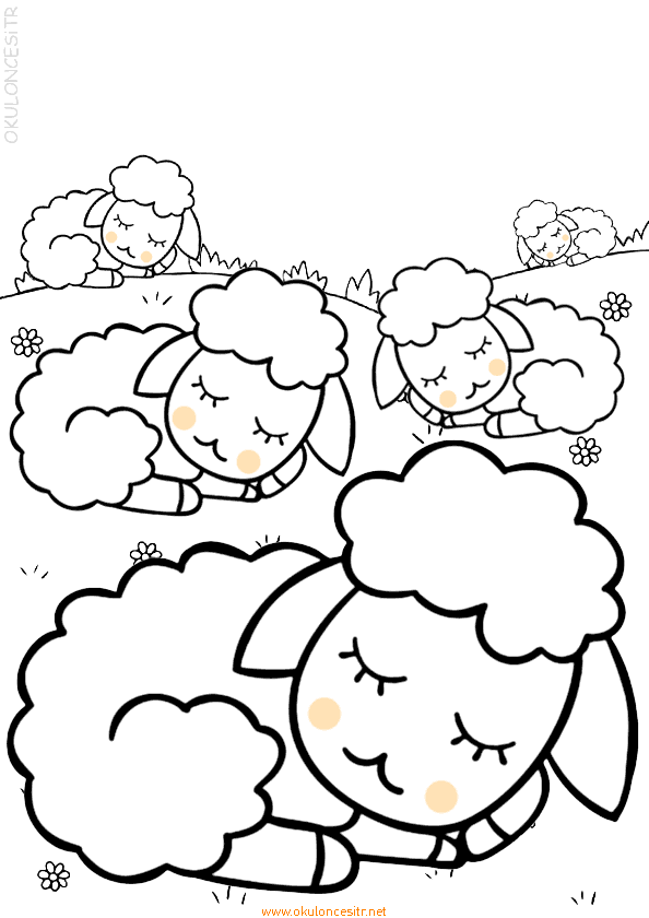 Uyuyan koyun boyama sayfası ve yerde uyuyan kuzular boyamaları oyunu, renkli çizimi siyah beyaz kalıbı boyaması, basit, zor, kolay yavru keçi koyun kuzu boyama sayfaları kitabı. Koyun nasıl çizilir, ücretsiz çıkartın ya da resimleri pdf indir, kalıp yazdır. Kindergarten, preschool kids free goat lamb sheep coloring pages download and printables.