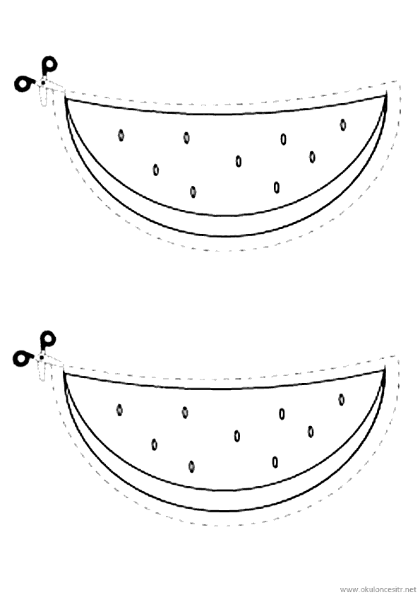 Karpuz okulöncesi makas kesme çalışması etkinlikleriyle, ilkokul 1. sınıf öğrencileri için makasla kağıt kesme çalışmaları örnek sayfaları, etkinlik sayfaları bu konuda yer almaktadır.