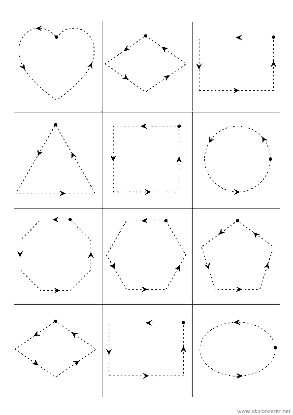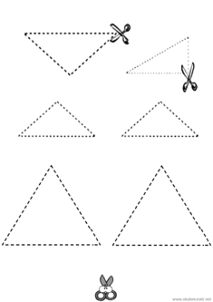 Üçgen ve şekillerden okulöncesi makas kesme çalışması etkinlikleriyle, ilkokul 1. sınıf öğrencileri için makasla kağıt kesme çalışmaları örnek sayfaları, etkinlik sayfaları bu konuda yer almaktadır.