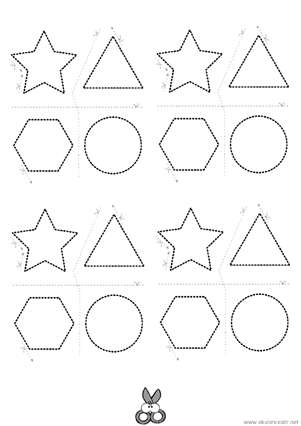 YIldız şekillerden okulöncesi makas kesme çalışması etkinlikleriyle, ilkokul 1. sınıf öğrencileri için makasla kağıt kesme çalışmaları örnek sayfaları, etkinlik sayfaları bu konuda yer almaktadır.