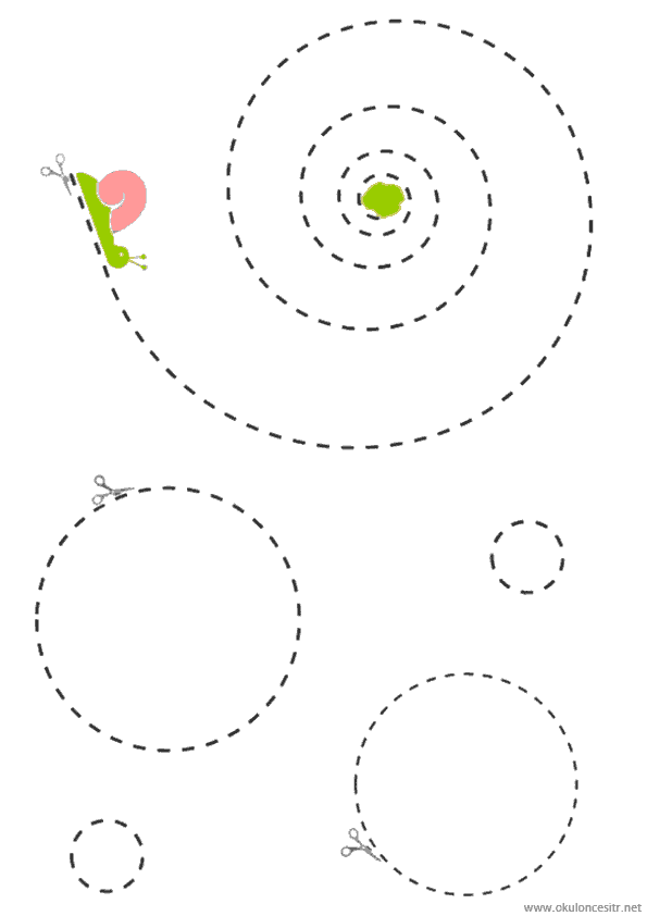 Salyangoz okulöncesi makas kesme çalışması etkinlikleriyle, ilkokul 1. sınıf öğrencileri için makasla kağıt kesme çalışmaları örnek sayfaları, etkinlik sayfaları bu konuda yer almaktadır.