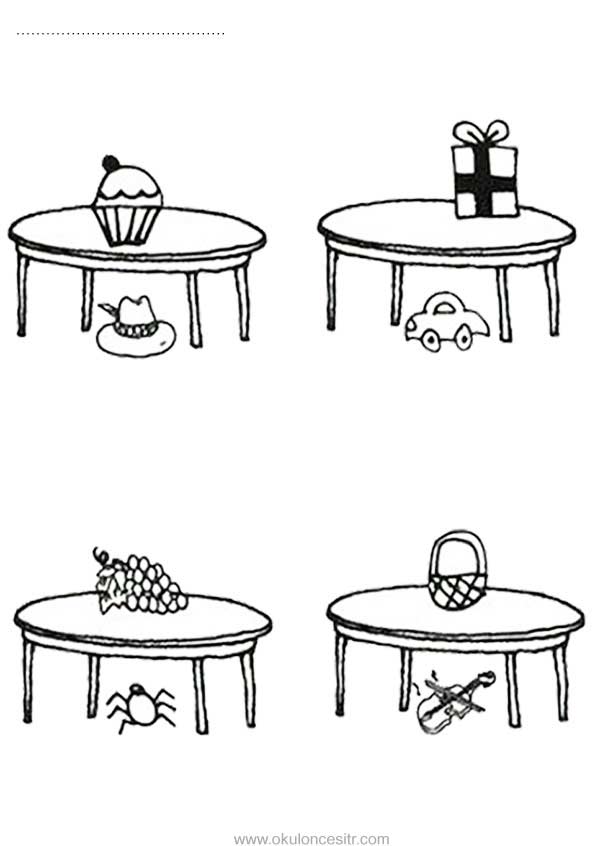 Mekanda konum kavramı çalışma sayfası etkinlikleri ile masa mekanda konum kavramları çalışmaları etkinliği örnekleri kağıdı indirme, çıktı yazdırma. Free object location worksheets download printable.