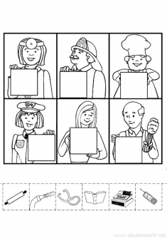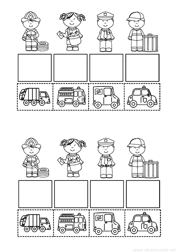 Meslekler eşleştirme çalışma kağıdı ve çöpçü, gazeteci, itfaiyeci, trafik polisi ücretsiz puzzle eşleştirme etkinlikleri, eşleştirme çalışmaları, eşleştirme oyunları çalışma sayfaları kağıtları ile oyunları indirme, yazdır. Free matching worksheets download and printables.