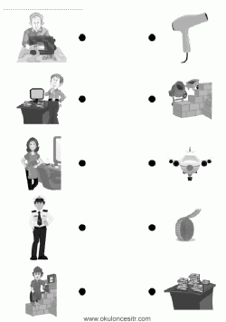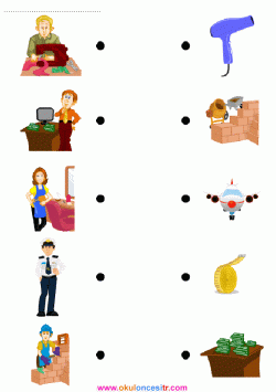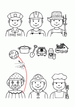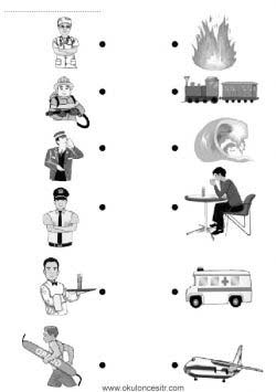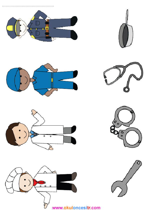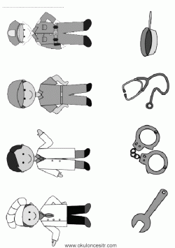 Meslekleri şleştirme çalışma kağıdı ve polis, doktor, aşçı, işçi ücretsiz eşleştirme etkinlikleri çalışma sayfaları kağıtları ile oyunları indirme, yazdır. Free matching worksheets download and printables.