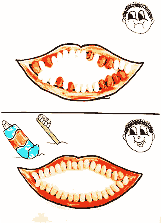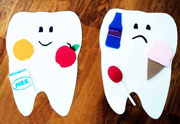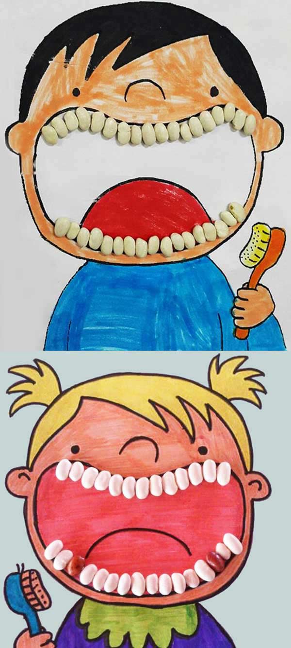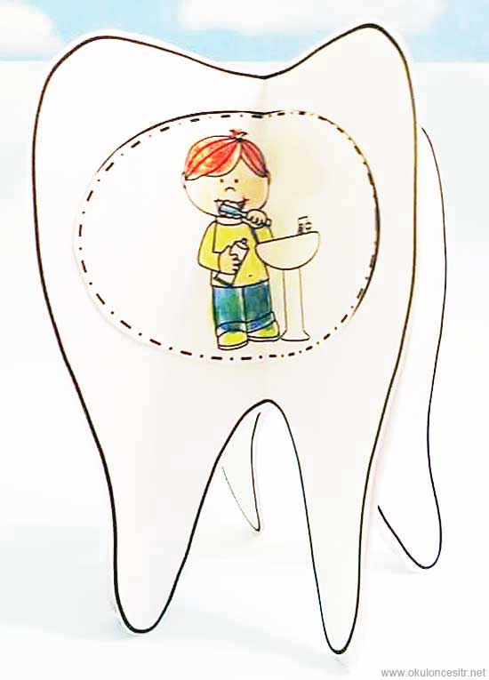• Biri mutlu biri üzgün olan iki diş resmi çocuklara verilir.