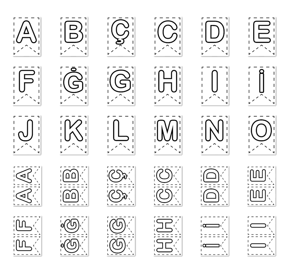 NOT: Aşağı tarafta BİR SAYFADA İKİ HARF OLACAK şekilde çıktı alabileceğiniz sayfalarda var.