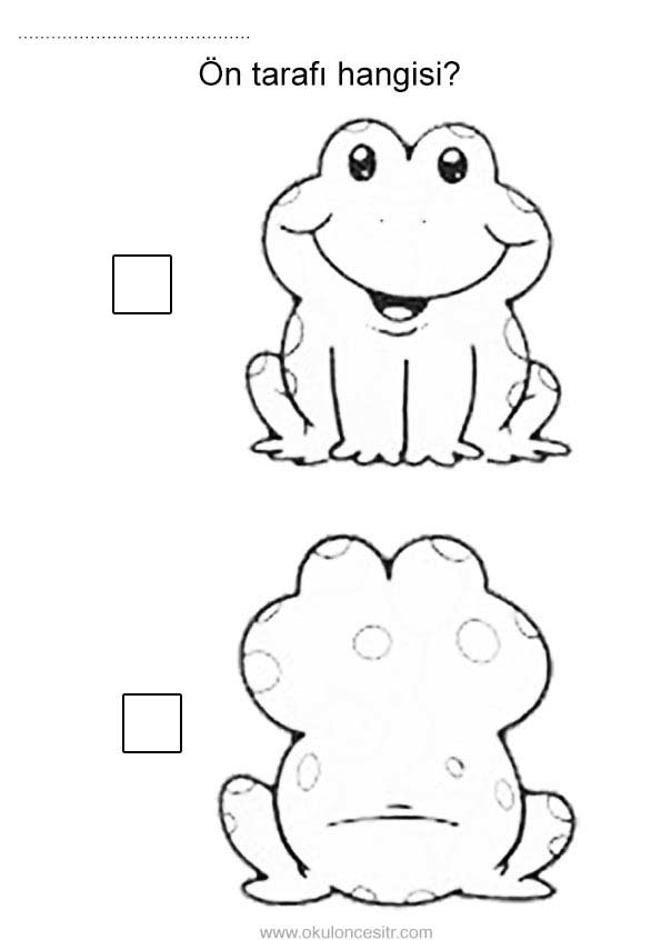 Ön arka kavramı çalışma sayfası etkinlikleri ile kurbağa ön arka yön kavramları çalışmaları etkinliği örnekleri kağıdı indirme, çıktı yazdırma. Free front side and back worksheets download printable.
