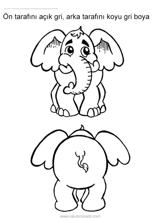 Ön arka kavramı çalışma sayfası etkinlikleri ile fil ön arka yön kavramları çalışmaları etkinliği örnekleri kağıdı indirme, çıktı yazdırma. Free front side and back worksheets download printable.
