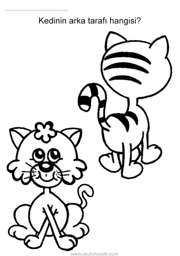 Ön arka kavramı çalışma sayfası etkinlikleri ile kedi ön arka yön kavramları çalışmaları etkinliği örnekleri kağıdı indirme, çıktı yazdırma. Free front side and back worksheets download printable.