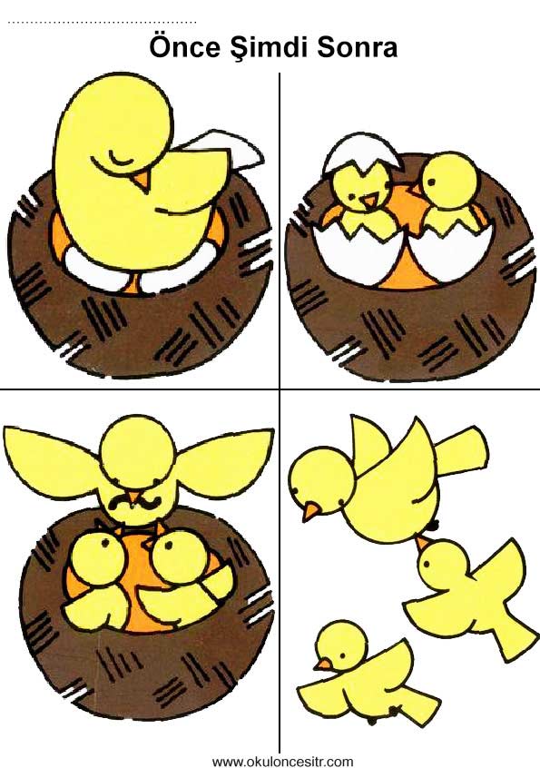 Önce şimdi sonra kavramı çalışma sayfası etkinlikleri ve kuş yuvası önce şimdi sonra zaman kavramları çalışmaları etkinliği örnekleri kağıdı indirme, çıktı yazdırma. Free before and after time worksheets download printable.