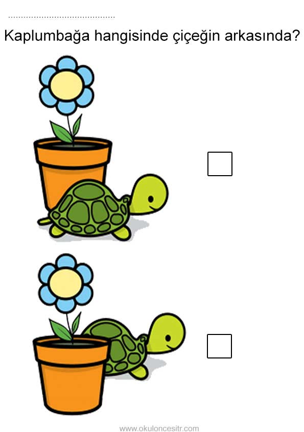 Önünde arkasında kavramı çalışma sayfası etkinlikleri ile kaplumbağa önünde arkasında mekanda konum kavramları çalışmaları etkinliği örnekleri kağıdı indirme, çıktı yazdırma. Free in front of and behind worksheets download printable.