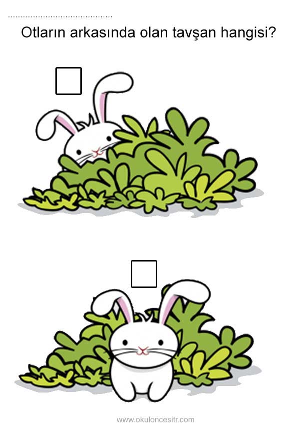 Önünde arkasında kavramı çalışma sayfası etkinlikleri ile tavşan önünde arkasında mekanda konum kavramları çalışmaları etkinliği örnekleri kağıdı indirme, çıktı yazdırma. Free in front of and behind worksheets download printable.