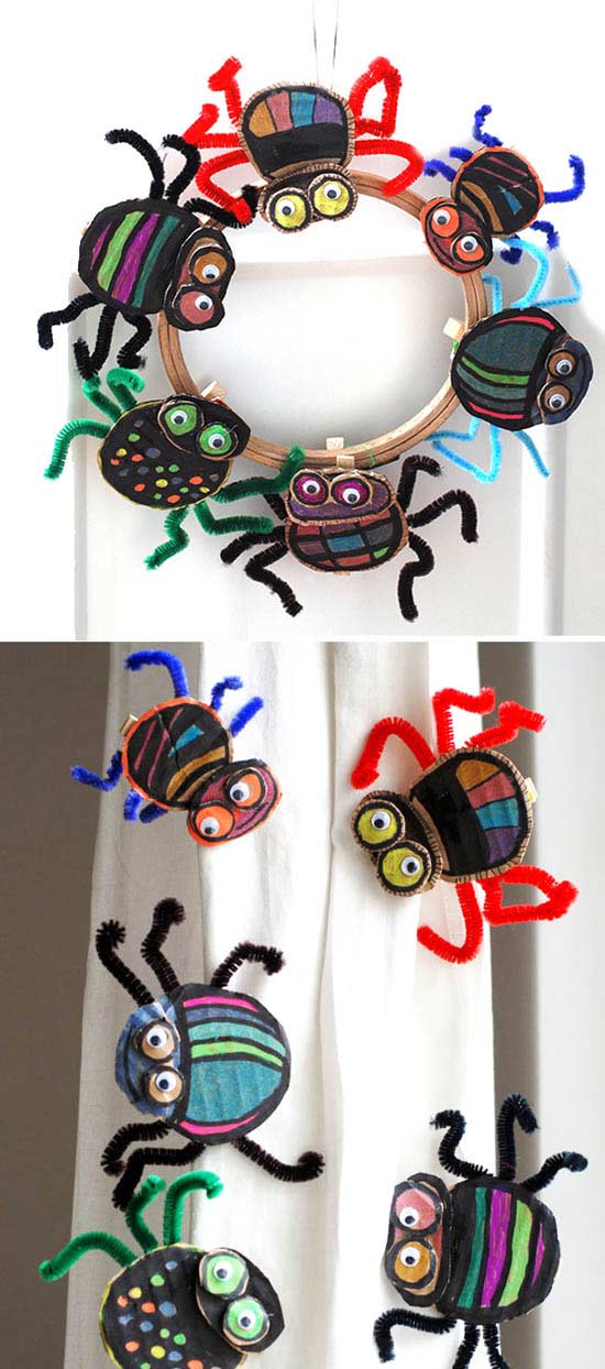 Örümcek yapımı, etkinlikleri el işleri çalışması ve örnekleri kağıttan kartondan basit kolay artık materyal etkinliği çalışmaları. Preschool activities craft site.
