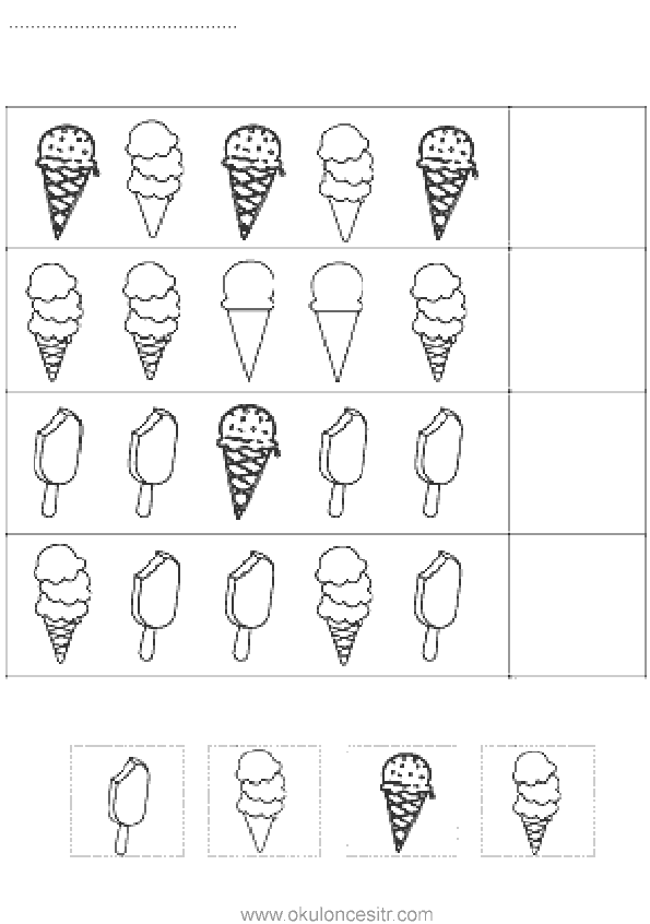 Örüntü çalışma sayfası kağıtları ile dondurma örüntü sıralama etkinlikleri sayfaları yazdırma çıktı alma sitesi. Free ice cream pattern sorting worksheets download printable.