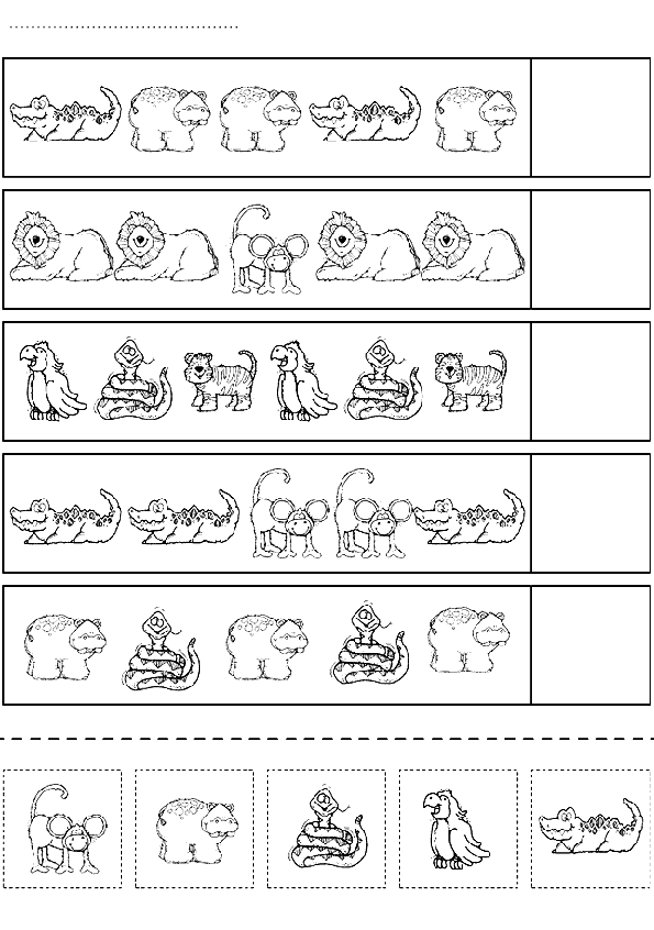 Örüntü çalışma sayfası kağıtları ile hayvanlar örüntü sıralama etkinlikleri sayfaları yazdırma çıktı alma sitesi. Free pattern sorting worksheets download printtables.
