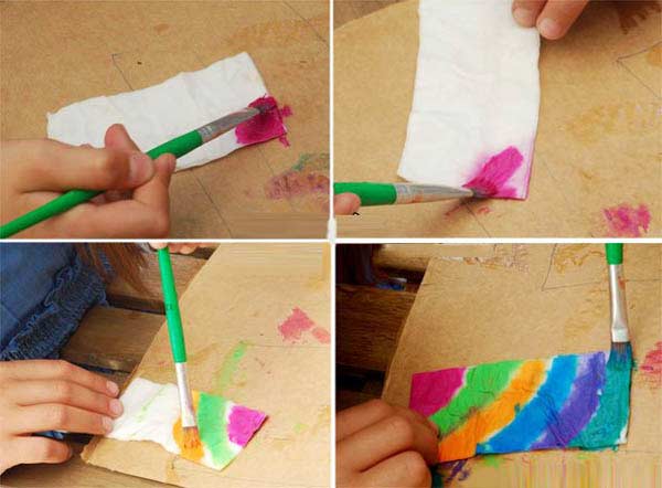 Peçeteyi boyayarak renkli güzel desen çalışmaları baskısı çalışmaları ve etkinlikleri örnekleri çalışması.